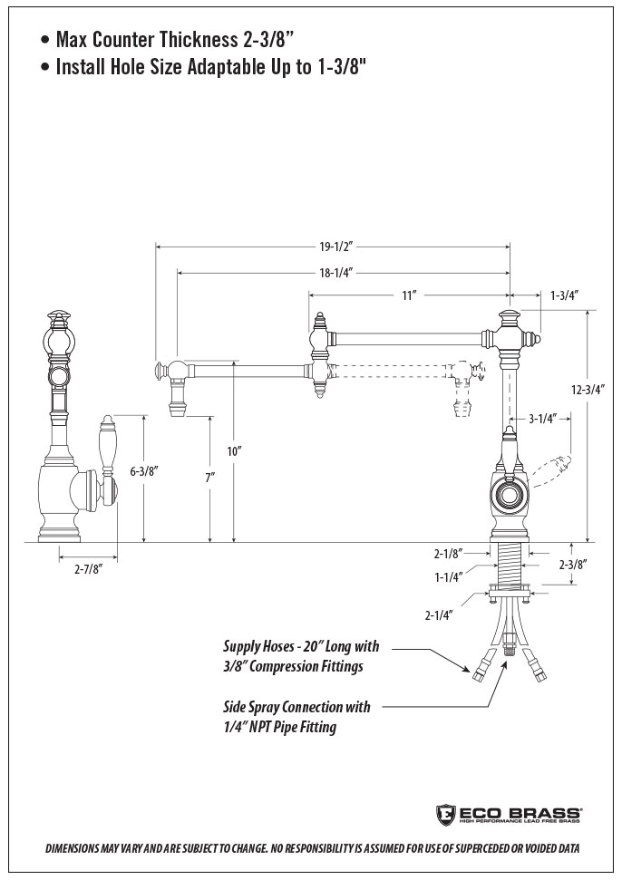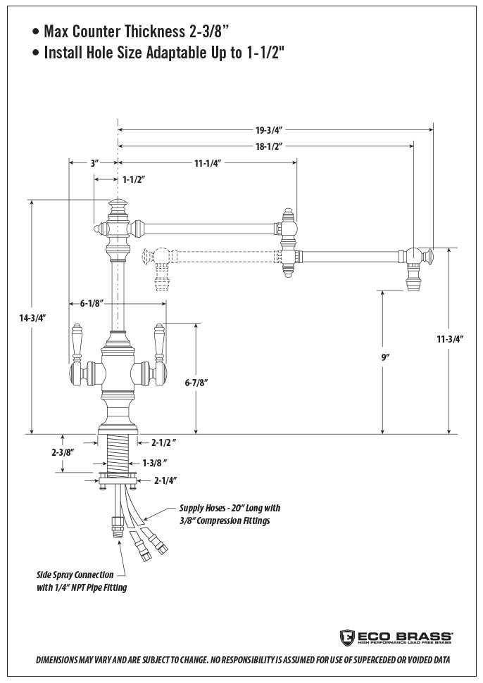 | 3400 | Contemporary Counter Mounted Pot Filler | Specs | Install | DXF |