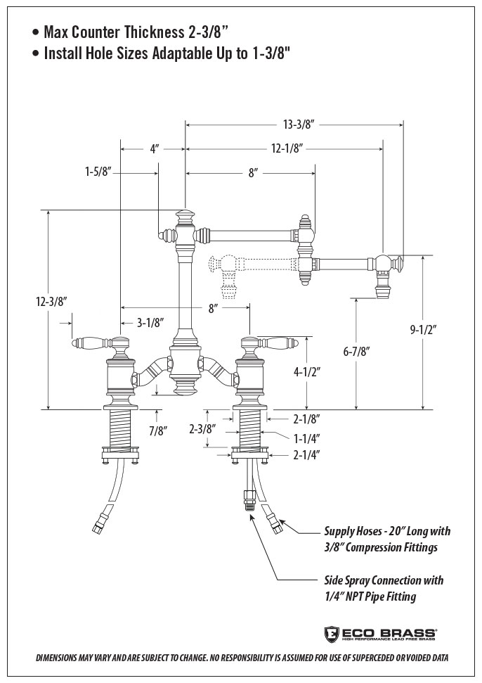 | 8030 | Hampton Two Handle Kitchen Faucet | Specs | Install | DXF |